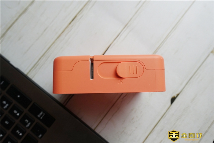 侧面是产品的状态指示灯和电源开关机键,电源键也是蓝牙配对键,边上则是开启后盖的滑口,通过这个滑口可以打开后盖。