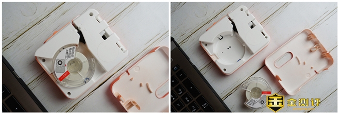 因为我入手的是标配版本,所以当打开后盖后可以看到内置了一卷白色的贴纸,这个贴纸如果用完了,可以直接在官方渠道进行购买即可,看了一下价格也不是很贵。