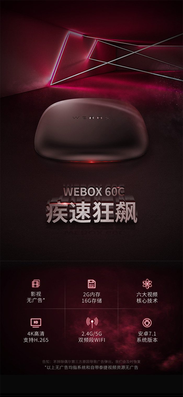 泰捷WEBOX 60C无线WIFI直播电视盒子网络机顶盒(2+16G版本) 8台