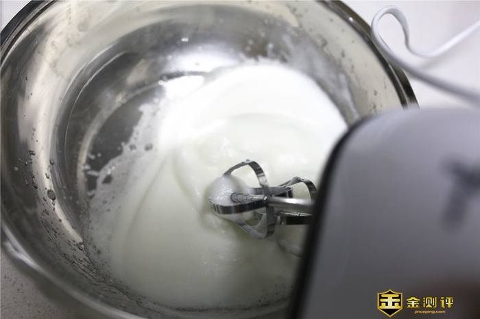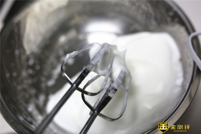 最后打发的状态是:将打蛋器提起时,蛋白不会自己掉下来。