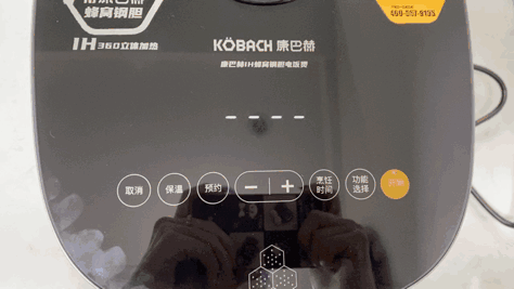 左边是取消、保温、预约功能按钮,右边是烹饪时间、功能选择、开始功能按钮。
