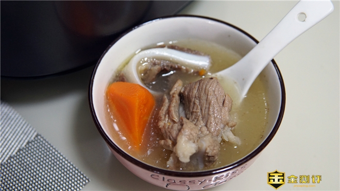 时间到了,会有一小段音乐提醒,非常有意思。打开煲盖,香味浓郁、营养十足的牛骨汤让人流口水了。