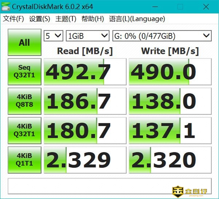 在PC上面,我们通过CrystalDiskMark测试其顺序读取、写入速度,从结果中可用看到,大华T70的顺序读取速度为492MB/s,顺序写入速度为490MB/s,这样的速度表现比普通的机械移动硬盘快多了,小文件基本上是一眨眼就完事了,1GB的文件也是2秒就搞定了,工作中可以大大提升效率。