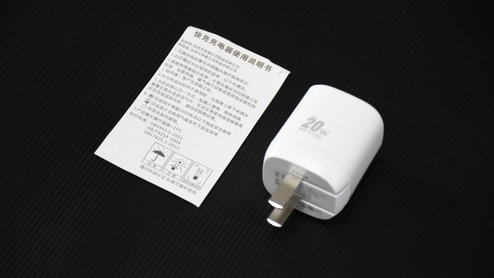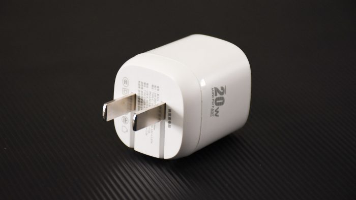 这款充电器的体积正符合它的命名,非常迷你,尤其是和现在那些大功率的充电器相比更显精致,只比乔老爷留下的五福一安充电头略大一丢丢。机身通体是白色,侧边标记有灰色的20W快充字样。边缘处融入圆弧线条过度,整体看上去显得圆润不少,握持或者装在口袋里也不会特别尖锐。
