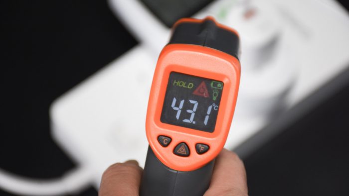 值得一提的是,在充电器机身当中内置有南卡PD控温芯片,芯片按照2次/秒的频率监控充电器的温度,保证设备始终处于低温充电,杜绝安全隐患。在室温22度的环境中为iPhone 13 Pro充电半小时后,利用温枪测试机身表面的温度为43度。
