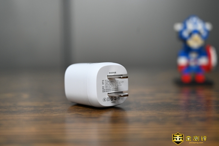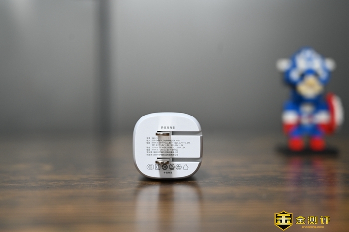 这款充电头本身体积非常小巧,还是插头可折叠的设计,尺寸只有33×33×55mm,日常携带非常方便。这款充电器是白色的,外壳采用了质感细腻的PC阻燃材料,做工看起来不错,细节没有什么瑕疵。