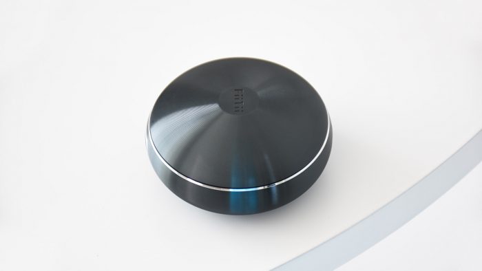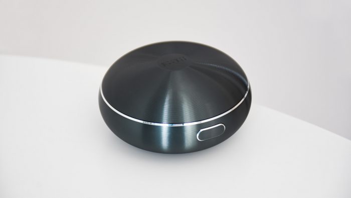 之所以在文章开头说这款耳机主打商务稳重型,主要是因为它的收纳仓设计比较别致,看上去像是一个颇具未来感的UFO造型。收纳仓整体采用7系航空级铝合金材质,深蓝色的机身通体设计有同心圆凹凸纹路,盒子标记有凹陷的FiiTii字样。