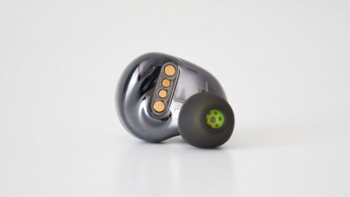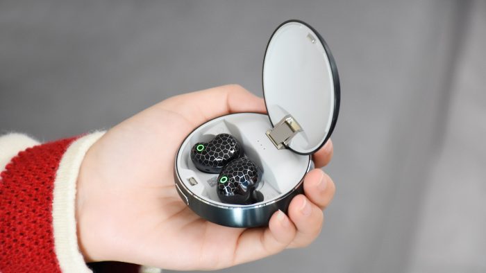 腔体内侧采用深灰色镀铬质感,亮面工艺显得科技感十足。腔体下方设计有四颗金属充电触点,靠近入耳部分旁边还有另外一颗麦克风开孔。另外值得一提的是,这款耳机还支持IP67级的防尘防水,能够有效抵御日常使用中汗水和雨水的侵蚀,延长耳机的使用寿命。