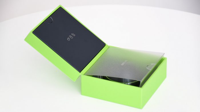 包装盒采用上下两段式的结构,盒盖一侧装有附件盒,盒体一侧放置有耳机和收纳仓,外面还有一层磨砂质感的薄塑料片,为整个包装增添了一丝朦胧感。