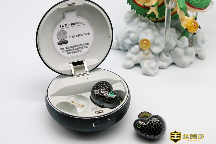 Fiitii(魔浪) HiFiPods的充电盒为圆形翻盖设计,材质为7系航空级铝合金,具有高硬度和强焊接能力,经过CNC工艺打磨之后,手感更加舒适。