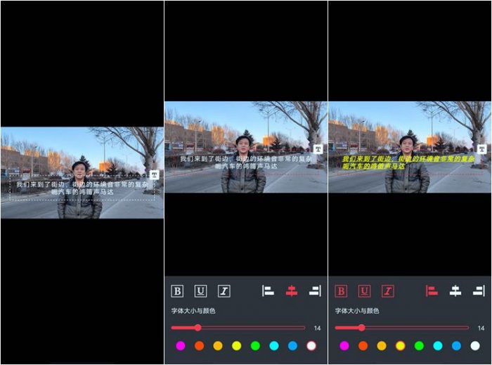 而字幕生成的功能则免去了将视频传导到电脑,再添加字幕的步骤,字幕有位置、颜色等多个选项。原始视频直接就可以编辑完成,并且上传分享,这对于时效性较强的新闻类视频是尤为重要的。