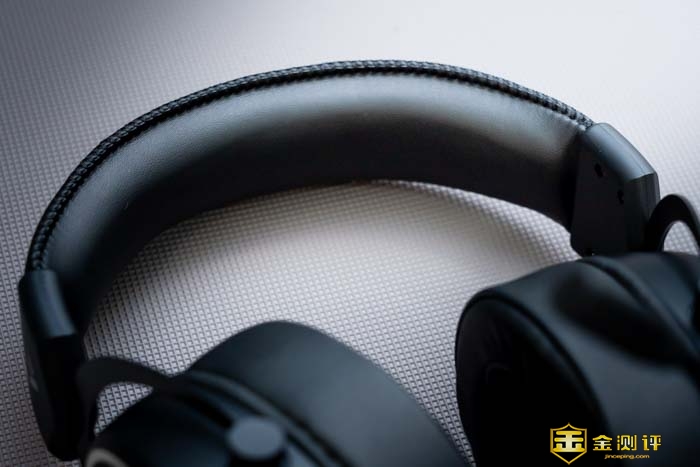 而头梁的海绵垫也是一样的设计,宽大粗厚的海绵,松软舒适,压在头顶上,没有任何生硬的不适。在舒服头戴的同时,也能起到良好的支撑作用,为头两边的耳罩分担耳机的受力点。