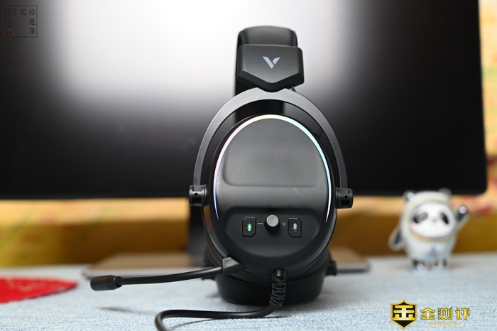 雷柏VH650的耳罩外侧有环状的RGB灯带,使用时能够获得走马灯式的RGB灯效,色彩比较丰富,使用时会不断变换,白天显示效果也很清楚。在耳机外侧除了这一圈RGB灯效之外,并没有多余的装饰,看着十分干净,可以贴上一些个性化的贴纸作为装饰。