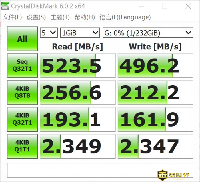 通过CrystalDiskMark进行测试,可以看到大华S809的读取速度能够达到523MB/s,写入速度则是高达496MB/s,确实符合预期,达到了官方的标准,作为系统盘使用确实没问题,通过手机直接读写U盘上面的文件同样会非常顺滑。