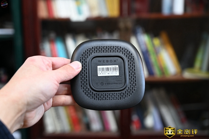 在这款电视盒子的底部是散热的位置,可以看到散热孔非常密集,这样在日常使用中,即使解码高清资源,或者是运行一些游戏APP,WEBOX WE60C升级版也可以轻松胜任。