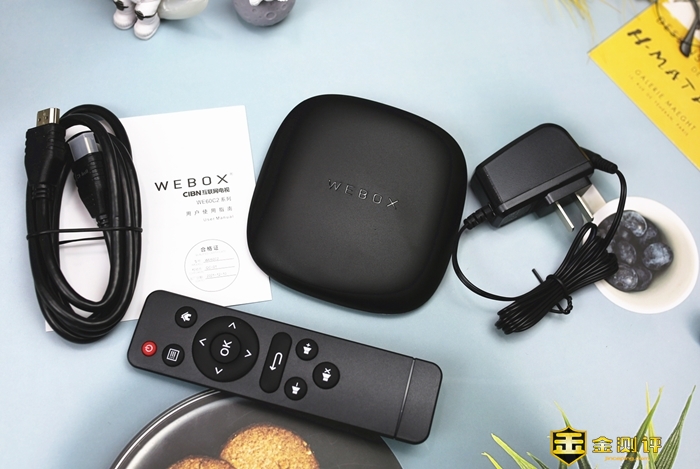 除了机顶盒主体,还附带了 HDMI 线、遥控器、电源适配器以及说明书,配件比较齐全。