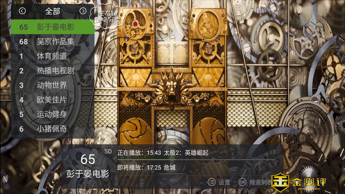 试看了几种不同类型的电视节目,感觉视频播放还是挺流畅的,在图像图形处理上,泰捷使用了图形图像加速引擎,在视觉处理上引入研发多年的 COCOS 引擎技术,让系统视觉上达到更加流畅的效果,让 WEBOX 的视觉动画帧率达到 60 帧,所以视频播放很流畅。