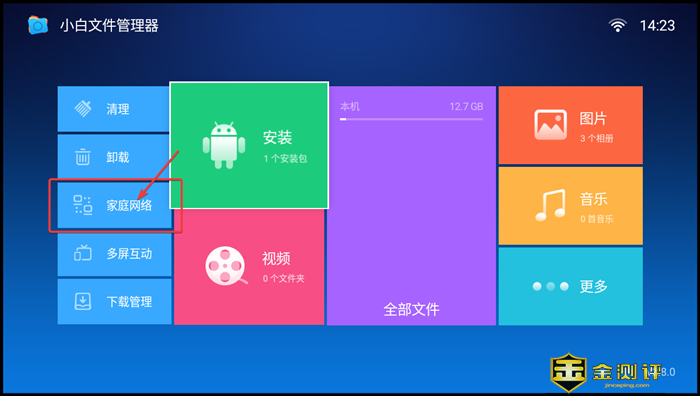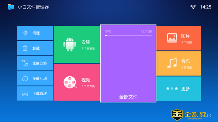 打开小白文件管理器后,选择紫色的全部文件,点击遥控器OK按钮: