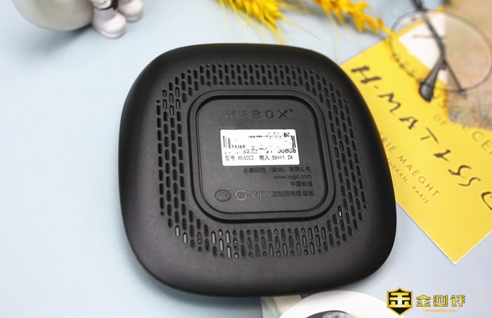 盒底中央为产品信息,有产品的标签,产品型号等信息。底部周边采用了 1mm*4mm 长条列阵式蜂窝气孔,散热孔开孔圆滑平整,便于电视盒子内部热量的快速释放,中间的方形凸起,垫高盒子保持离地距离,保证散热孔通风,良好的有利于保障CPU和内存的高速运行,长久来说 利于保持零器件的使用寿命,久用不易发生卡顿。