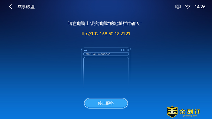 会看到弹出共享地址,在我的电脑输入下面黄色的地址就可以访问了,在共享期间这个页面是不能关闭的,如果关闭就不能共享了: