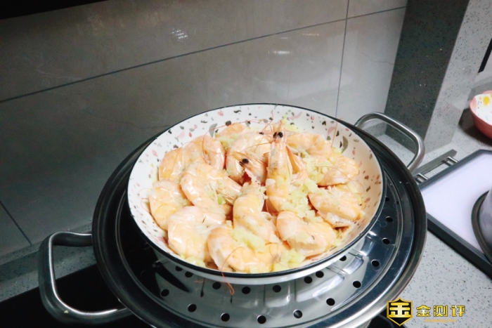 康巴赫防干烧智能定时蒸锅提示放入1.5升水,水开后把虾连同盘子一起放入。蒸12分钟左右。