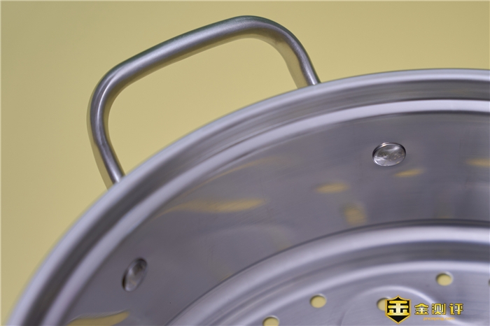 此外还有一个小细节值得夸奖——把手。蒸格、汤锅的两侧都配有不锈钢材质的防烫把手。把手与锅体通过铆钉精密连接,工艺处理十分精致。