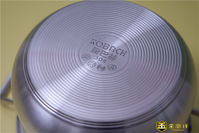 底部的汤锅高约16.6cm,也是食品级304不锈钢材质。在腰身中部有“KOBACH康巴赫”logo。