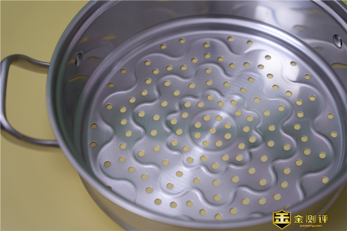 蒸格的高度也有11cm左右,通体食品级304不锈钢一体成型,在底部有一层层的凸起花纹和用来通气的圆孔。