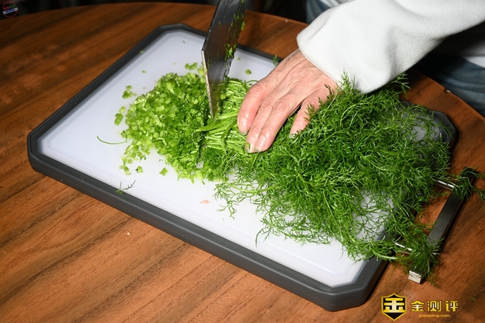 最近用康巴赫这款菜板的PP面时,我发现它上面非常干净,而且没有异味,相比于不锈钢,PP面的硬度更高,用来剁肉没有问题,而且在剁肉甚至剁排骨的时候,PP面上也找不到明显的刀痕,不伤刀不开裂,看起来确实相当耐用,此外在PP面板的周边还有一圈防溢凹水槽,切一些多汁的食材时很好用。菜板用过之后也很容易清理,并且可以通过它附带的提手悬挂起来备用。
