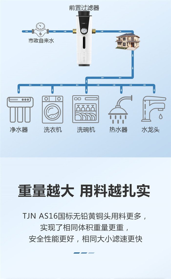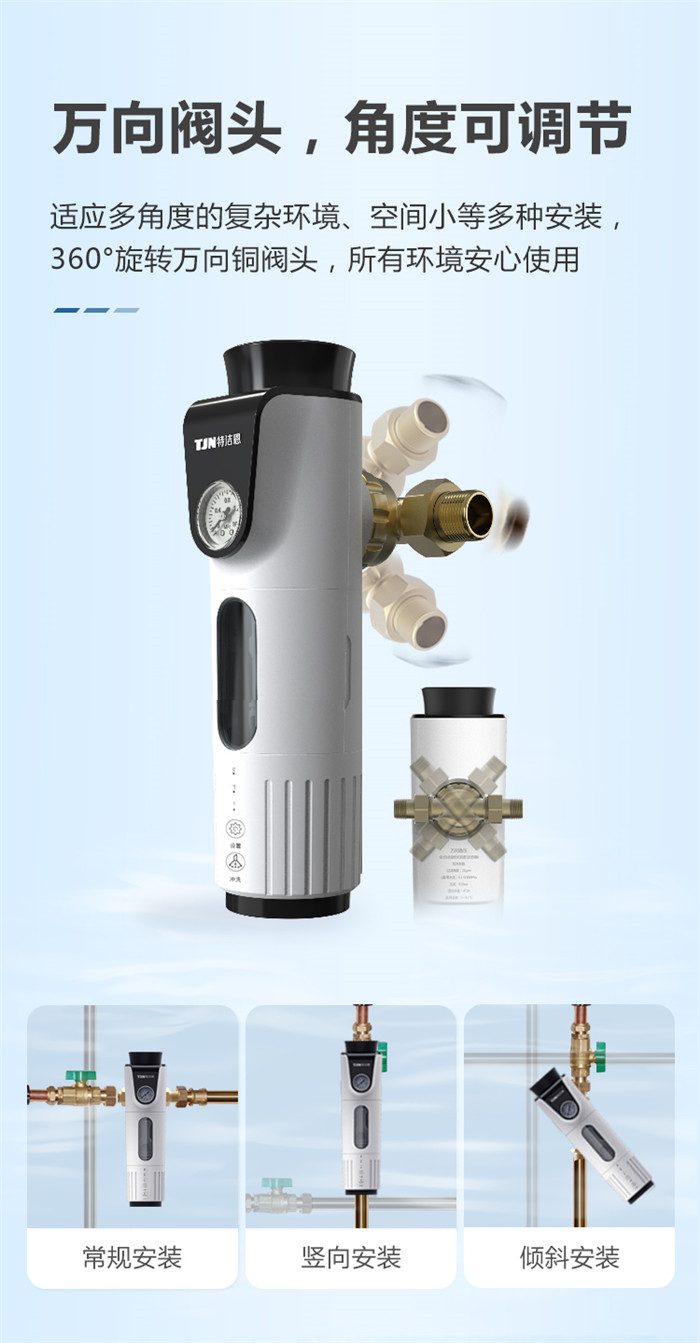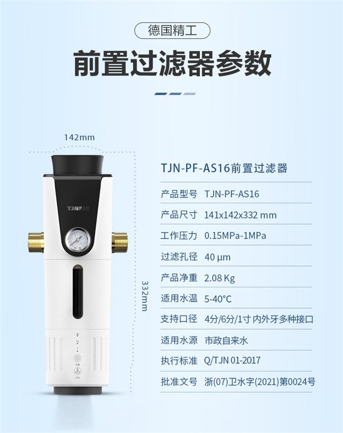 德国TJN特洁恩大流量前置过滤器家用反冲洗全铜自动冲洗净水器怎么样呢?一起来看看实际的使用体验:【金测评】德国特洁恩前置过滤器AS16体验:前置过滤首选,大通径、自动反冲【金测评】特洁恩AS16前置过滤器上手:水质净化无声搞定,让洗菜洗衣用水更健康【金测评】特洁恩AS16前置过滤器体验:家庭用水第一道防护【金测评】特洁恩前置过滤器评测:免耗材维护给我健康的家庭用水环境