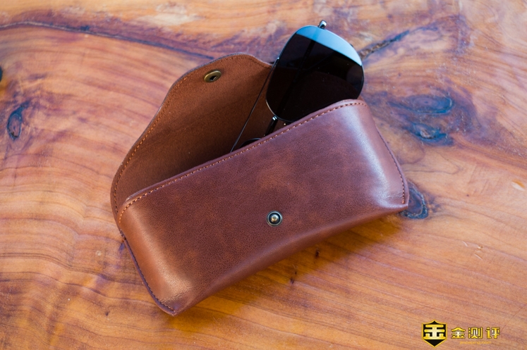 眼镜还赠送了一个皮质的收纳包,适合外出携带。镜片是经典飞行员款型,风格比较狂野彪悍,并且显脸小,男女都能戴。