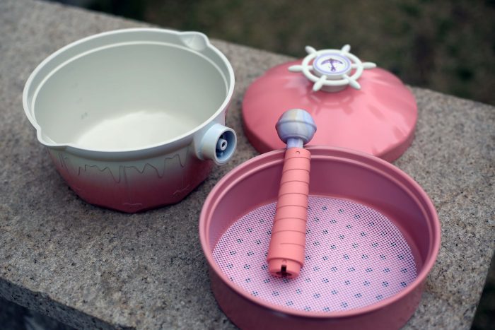 锅盖就相当可爱了,尤其是上面的提手,犹如一个船舵。而且还可以旋转拆卸。方便日后清洗维护。