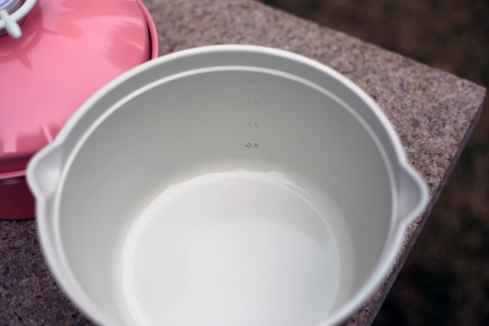锅内采用了天然萃取的铸瓷内壁,采自天然矿区,拥有天生自洁性,并且不怕任何的磕碰。可以说是一款更健康的不粘锅。而且内部还有水位刻度方便使用。