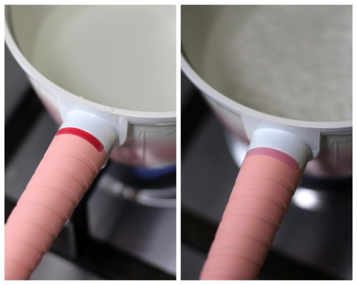 在煮沸的过程中,我们可以看到这款锅的导热相当迅速,通过转动燃气灶的火力大小,锅内的沸水也立马会有明显变化!