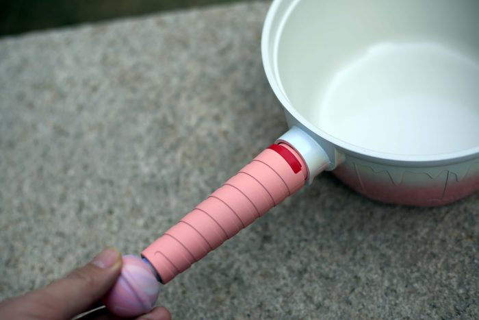 接下来只需安装好手柄就可以正常使用了,我们看到这款锅的手柄也非常有特色,像一个螺旋棒棒糖很是可爱!