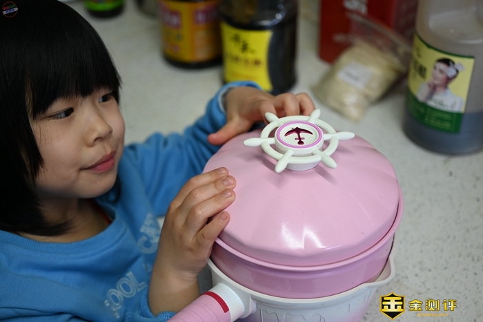 看看小奶锅的手柄这里,设计也很巧妙,它上面有个棒棒糖的装饰,手柄的主题我感觉像是冰激凌,总之做得确实很可爱,而且手感也很不错。