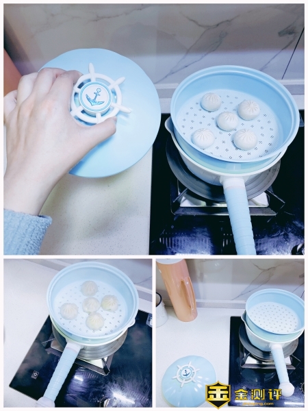 蒸屉本身一体蓝色设计,附送蒸笼布,算是很贴心了。