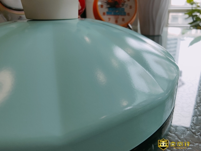 锅盖上的花纹设计抛光效果很好,圆润的质地,带着瓷般的光泽,手感又是磨砂的,具有一定的防滑性。