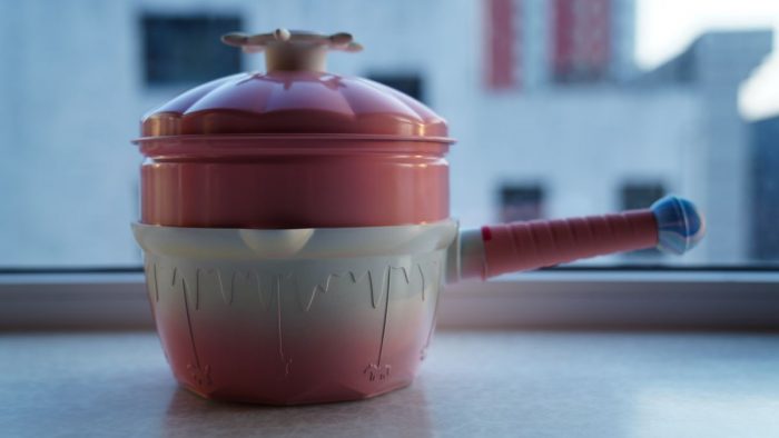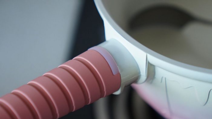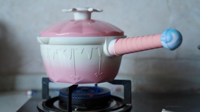 手柄则采用了螺旋棒棒糖的造型,使得整个锅具让人看了都非常有食欲。