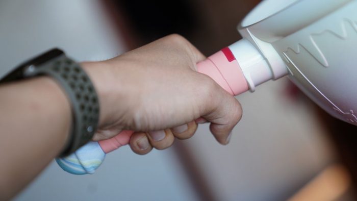 人体工学手柄握持感舒适,棒棒糖状的纹理可以有效加大摩擦力,保证倾倒时能够握稳。