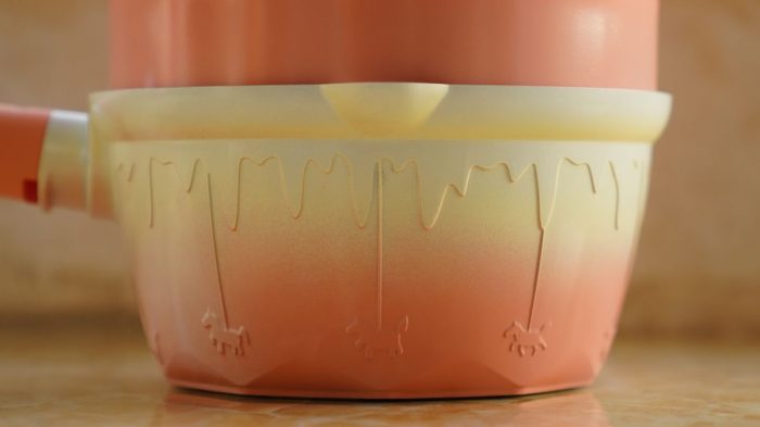 锅体两侧还分别有一个导流口,方便用户将牛奶、汤汁等顺利倒出。