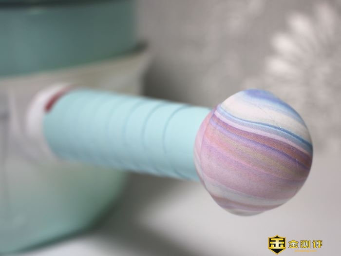 锅柄末端是一个多彩的棒棒糖造型,很小清新,据说是每一个锅都不一样,估计是自然流动造型的,看的还不错。