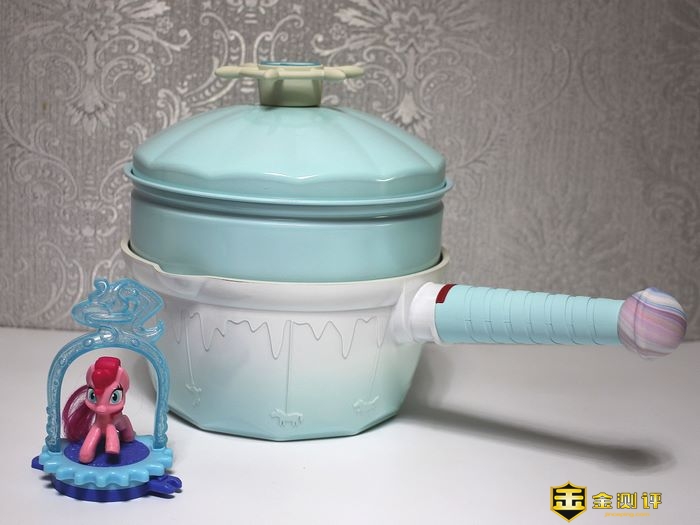 这个系列是旋转木马主题的,迪士尼配色,我选了多尼蓝,白色和蓝色的渐变锅身,上面有旋转木马的浮雕,说实话,实物比图片好看。
