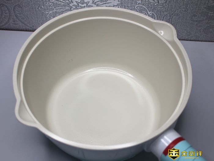 锅体内壁是铸白陶瓷的,带一点闪闪的感觉,介绍说是锅体一共有四层构成,除了不沾之外还有银离子抗菌等诸多功能。