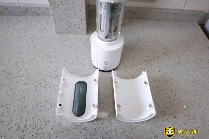 特洁恩AS16前置过滤器的操控区是可以360度旋转的,直接把它旋转180度就能拆卸电池了,非常方便。