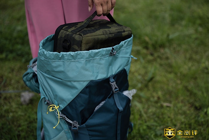 背包的内部结构为大口径的桶状,较大的物件也能轻松放下,我有时也会背相机内胆出门,可以轻松的带下一机三镜,内里还有水袋仓位,封口则是采用的抽拉绳结构。