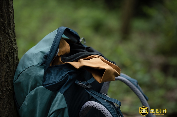 在拿到这款背包的时候就发现这款背包是真轻,30升的背包净重只有860克,在面料上和配件上作了相应的轻量化选择,背包的主面料为100d牛津布pa ,这种满是小方格纹路程的面料摸上去手感略带磨砂感。虽然轻薄,但在实际使用当中也可以看出具有不错的耐磨性,还具有一定的防水性能。
