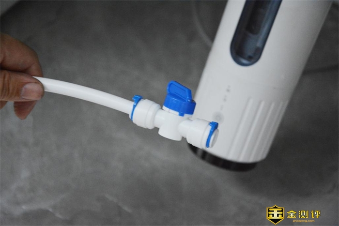 然后将万向铜阀接入水管,调整好方向就可以。注意安装之前一定要先关闭水阀,安装好之后排污管接入下水管道中。以上便是实际安装好之后的效果图。