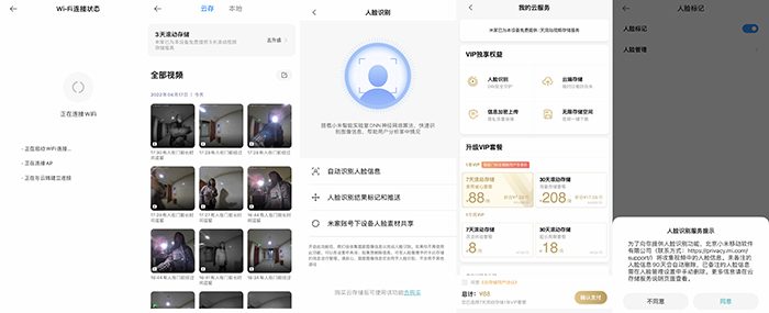 在猫眼监控方面,鹿客S50M提供了云端存储以及人脸识别功能。云端存储支持3天免费滚动存储,更多的存储方案可以花钱购买云服务,遗憾的是无法支持自己插卡使用;人脸识别功能在主动标记视频素材里的人脸后,后期会自动识别人脸并进行推送,不过这个功能需要购买鹿客的云服务才能够开启。