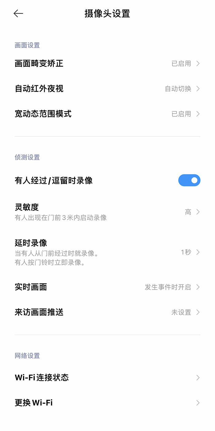 鹿客摄像头功能丰富,从鹿客S50M“学名”就可以看出来:指静脉智能锁猫眼款S50M,这颗摄像头还起到了猫眼的作用。从米家App里的功能菜单来看,基本和我正在使用的鹿客只能猫眼Lite一致。